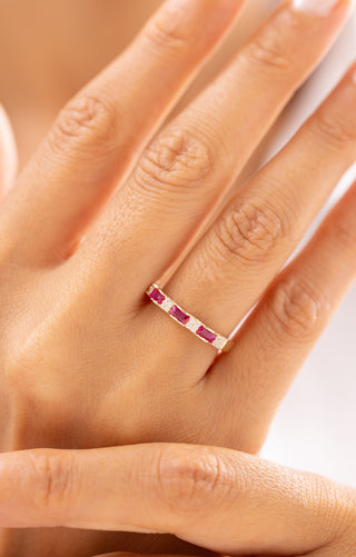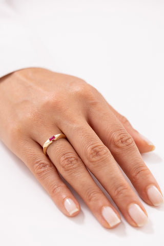 Minimal Pembe Baget Taşlı 14 Ayar Altın Yüzük