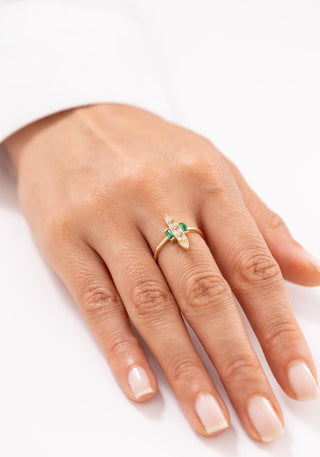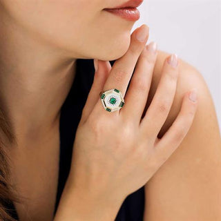 Vintage Esintili Zümrüt Baget 14 Ayar Altın Yüzük