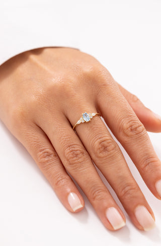 Mavi Renkli Baget Taşlı 14 Ayar Altın Yüzük