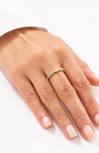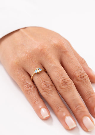 Işıltılı Mavi Baget Taşlı 14 Ayar Altın Yüzük