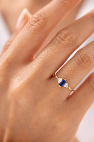 Baget Mavi Taşlı Minimal 14 Ayar Altın Yüzük