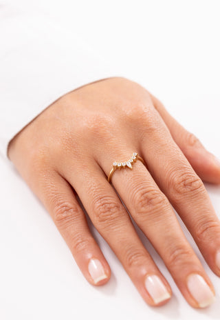 Ay Desenli Baget Taşlı 14 Ayar Altın Yüzük