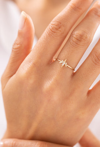 Yıldız Işıltısı Baget Taşlı 14 Ayar Altın Yüzük