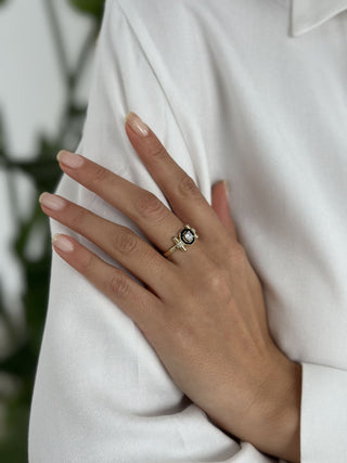 Siyah Mineli Baget 14 Ayar Altın Yüzük
