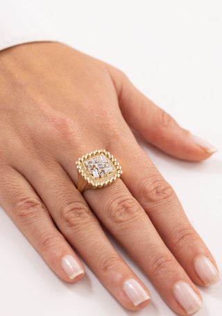 Baget Taşlı Çerçeve Model 14 Ayar Altın Yüzük