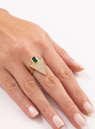 Zümrüt Baget Taşlı Üçgen Yüzük