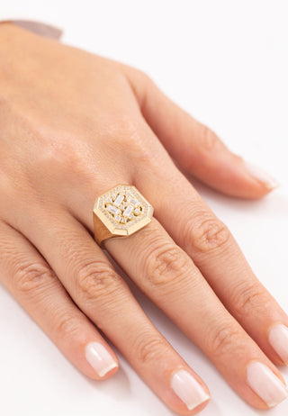 M Harfli Baget Taşlı 14 Ayar Altın Yüzük