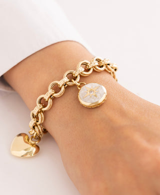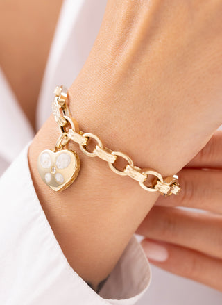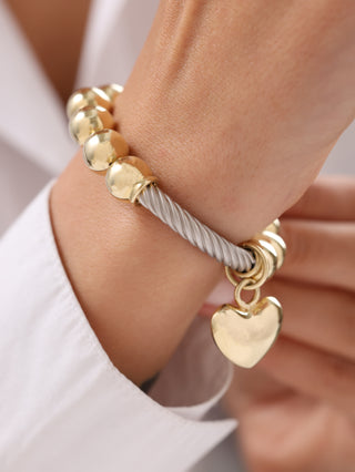 Cetaş Eterna Kalp Charm Detaylı Bombeli 14 Ayar Altın Bileklik