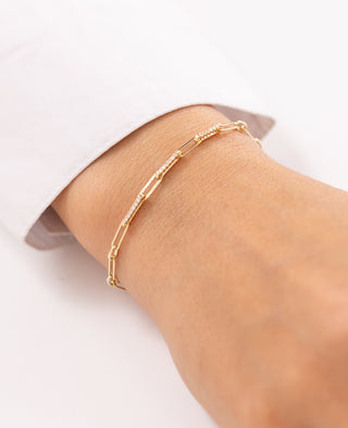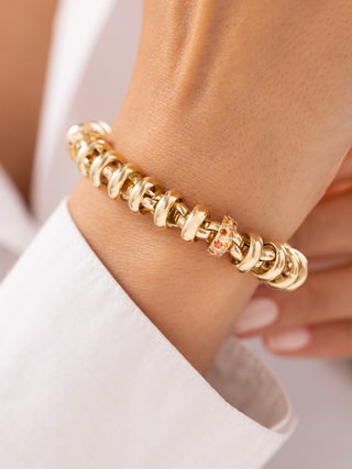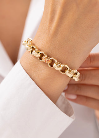 Cetaş Eterna İtalyan Stil Çekiç Desenli Taşlı 14 Ayar Altın Bileklik