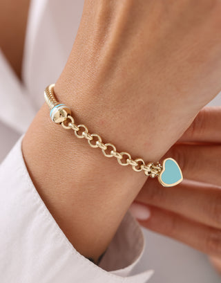 Cetaş Eterna Turkuaz Kalpli Zincir Formlu 14 Ayar Altın Bileklik