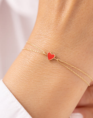 Çift Zincirli Kırmızı Kalp 14 Ayar Altın Bileklik