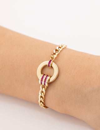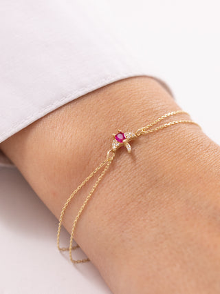 Kırmızı Taşlı Zümrüt Kuşu Çift Zincirli 14 Ayar Altın Bileklik