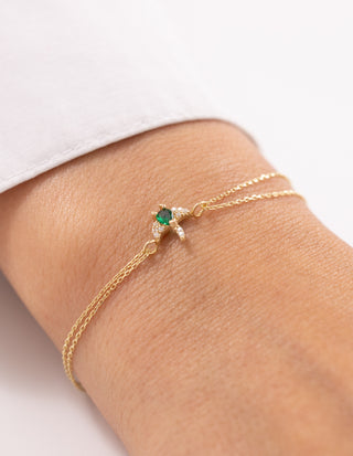 Taşlı Zümrüt Kuşu Çift Zincirli 14 Ayar Altın Bileklik