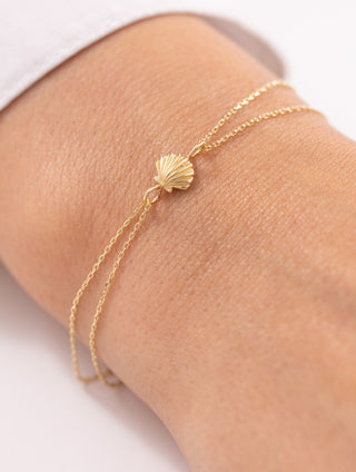 Deniz Kabuğu Çift Zincirli 14 Ayar Altın Bileklik