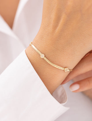 Minimal Tasarım Taşlı Çift Zincirli 14 Ayar Altın Bileklik