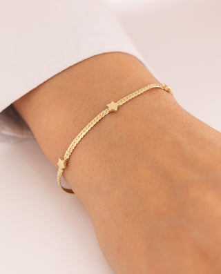 Minimal Üç Yıldızlı Çift Zincirli 14 Ayar Altın Bileklik