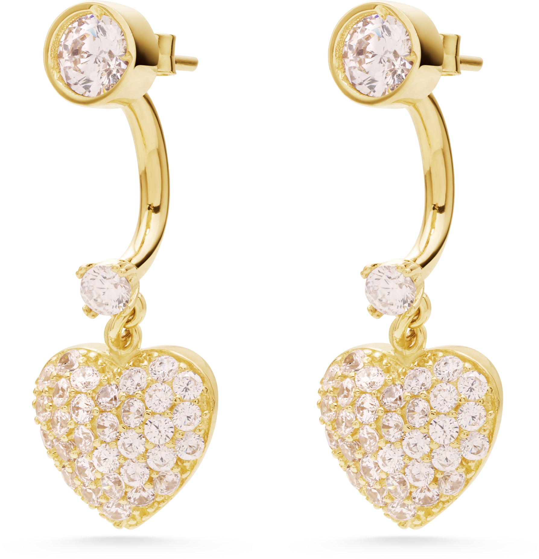 Genola Işıltılı Taşlı Kalpli 14 Ayar Altın Küpe