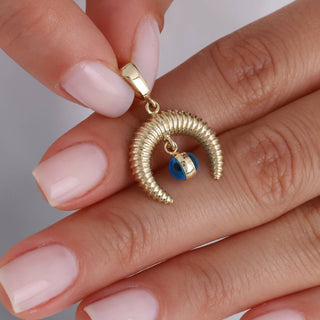 Hilal Nazar Boncuklu 14 Ayar Altın Kolye Ucu