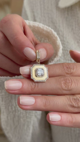 Vintage Beyaz Taşlı 14 Ayar Altın Kolye Ucu