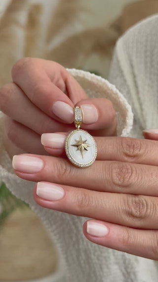 Beyaz Mineli Kutup Yıldızı 14 Ayar Altın Kolye Ucu