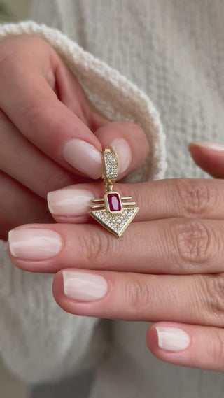 Kırmızı Taşlı Üçgen 14 Ayar Altın Kolye Ucu