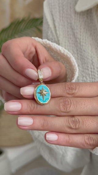 Turkuaz Mineli Kutup Yıldızı 14 Ayar Altın Kolye Ucu