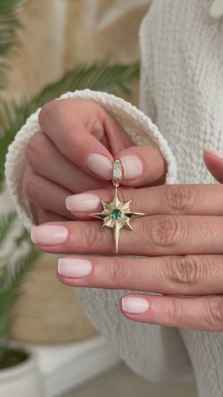 Zümrüt Yeşili Taşlı Kuzey Yıldızı 14 Ayar Altın Kolye Ucu