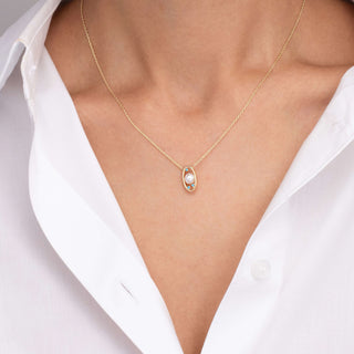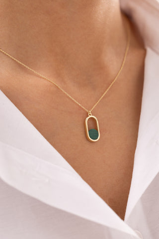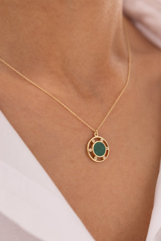 Oval Çerçeveli Yeşil Doğal Taş 14 Ayar Altın Kolye