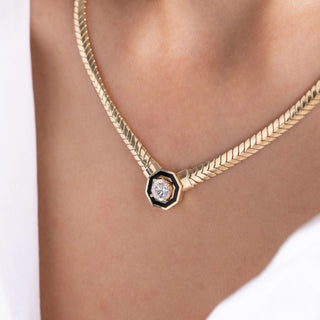 Siyah Mineli Tektaş 14 Ayar Altın Kolye