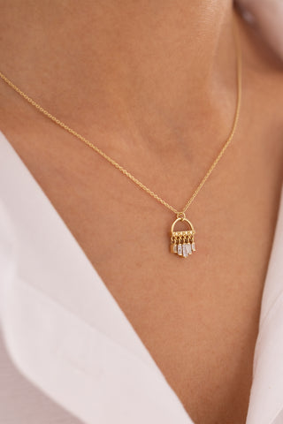 Minimal Taşlı Kilit 14 Ayar Altın Kolye