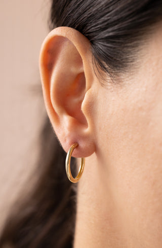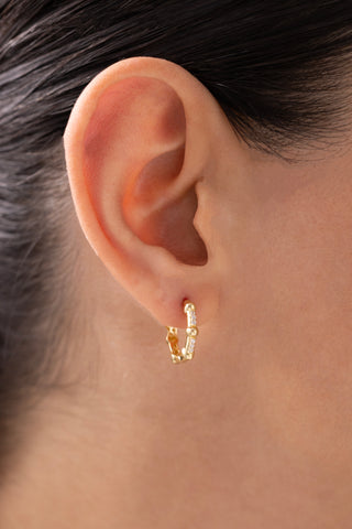 Minimal Taş Hatlı 14 Ayar Altın Halka Küpe