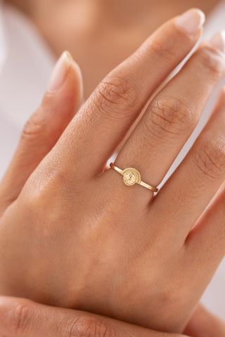 Antik Figürlü Minimal 14 Ayar Altın Yüzük