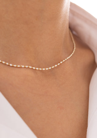 Beyaz Taşlı Minimal 14 Ayar Altın Kolye