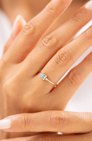 Baget Mavi Taşlı Minimal 14 Ayar Altın Yüzük