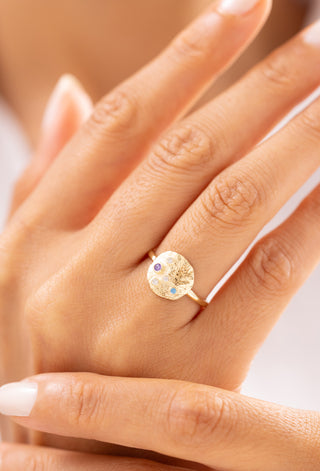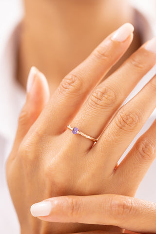 Mor Taşlı Minimal İnce 14 Ayar Altın Yüzük