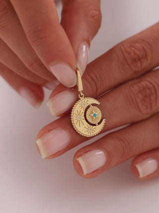 Minimal Taşı Ay 14 Ayar Altın Kolye Ucu