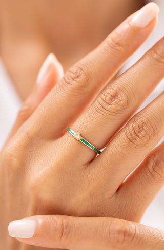 Yeşil Mine Minimal 14 Ayar Altın Yüzük