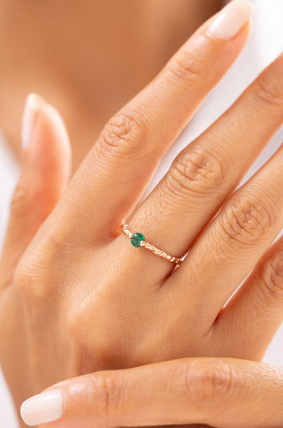 Yeşil Taşlı Minimal Tektaş 14 Ayar Altın Yüzük