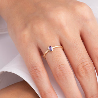 Mor Mineli Taşlı 14 Kalp Ayar Altın Yüzük