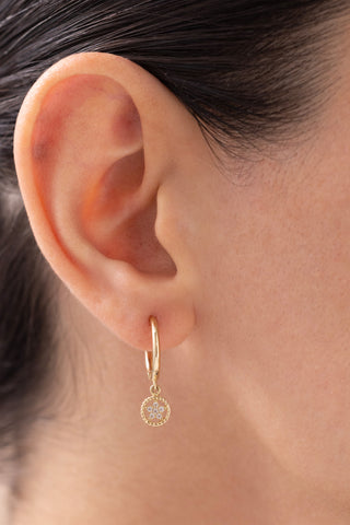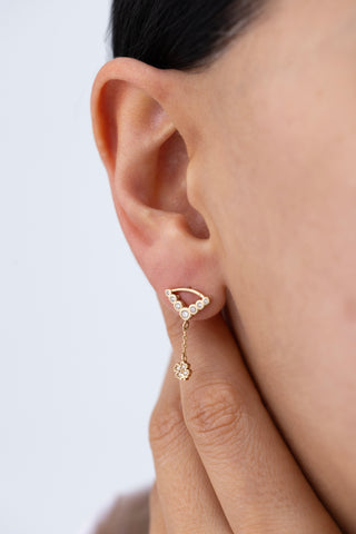 Taşlı Charm Sallantılı 14 Ayar Altın Küpe
