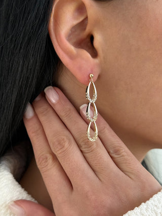 Oval Sallantı Işıltı 14 Ayar Altın Küpe
