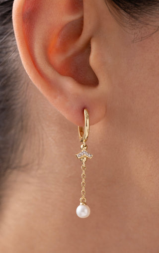 Zarafet İncisi Küpe 14 Ayar Sallantılı Altın