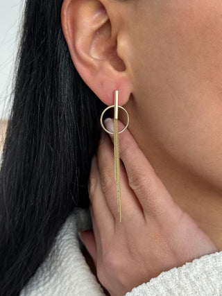 Dikdörtgen Sallantılı 14 Ayar Altın Küpe
