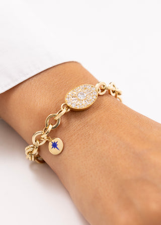Genola Oval Taşlı Zincir 14 Ayar Altın Bileklik