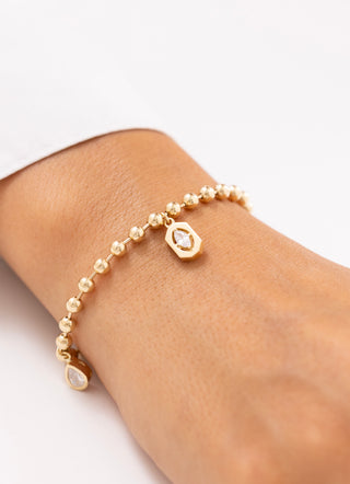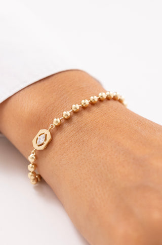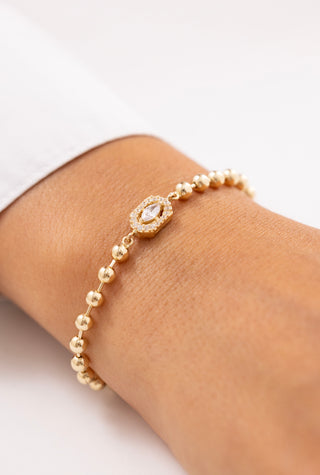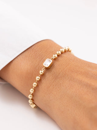 Genola Baget Taşlı Top Zincir 14 Ayar Altın Bileklik
