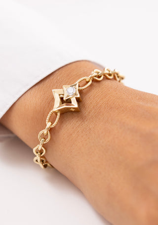 Genola Özel Kesim Yıldızlı Taşlı 14 Ayar Altın Bileklik