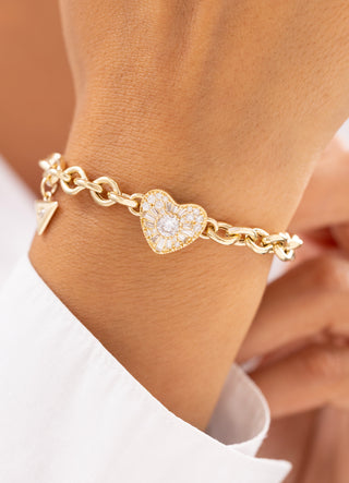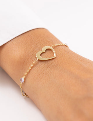 Genola Taşlı Kalpli 14 Ayar Altın Bileklik