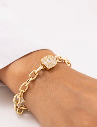 Genola Işıltılı Kare Taşlı 14 Ayar Altın Zincir Bileklik