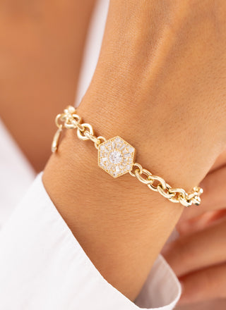 Genola Altıgen Taşlı 14 Ayar Altın Bileklik