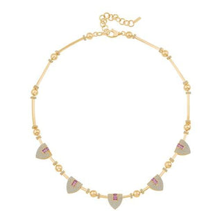 Yuvarlak Pembe Taşlı Baget 14 Ayar Altın Kolye
